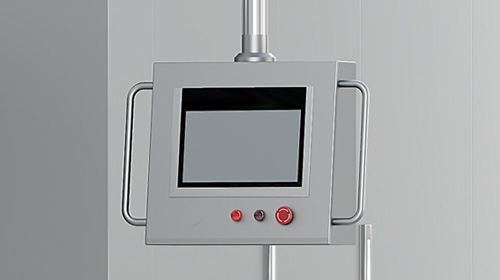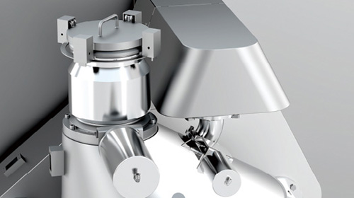 自动密闭出料装置 俗称"象鼻子出料装置",能够有效避免胶塞出料时与外界接触造成污染; 出料系统可进行CIP和